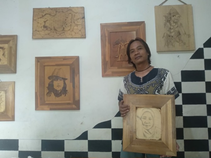 Seni lukis semakin berkembang. Kini muncul pyrography. Yakni, lukisan menggunakan media kayu dengan teknik pembakaran. Itu pula yang ditekuni Machrudin sejak 2011 silam. Siapa sangka, hasil karyanya diminati banyak pecinta lukisan.