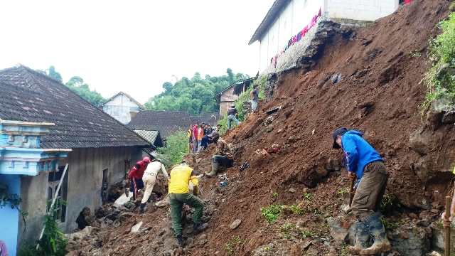 Suara teriakan longsor membuat warga Dusun Belung, Bedagung, Panekan, Magetan, ini berhenti menonton televisi di ruang tamu, Kamis (16/2) malam. Prayitno, 33, bergegas masuk kamar tidur untuk menyelamatkan istri dan dua anaknya yang sedang terlelap.
